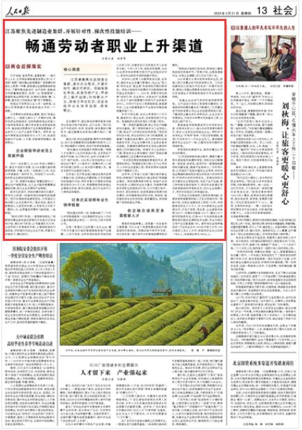 人民日報丨江蘇聚焦先進(jìn)制造業(yè)集群 暢通勞動者職業(yè)上升渠道