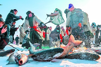 每年1月,博斯騰湖都會舉行冬捕活動,這也是當(dāng)?shù)貧v史悠久的冰雪民俗文化活動之一。經(jīng)過春天的繁殖,夏天的成長,秋天的肥碩,冬天就成了最好的捕魚時節(jié)。正所謂“三季靠一冬”,每年這個時節(jié),冬捕就是這里最熱鬧、最歡樂的事兒。
