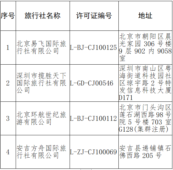 文旅部:取消4家旅行社經(jīng)營出境旅游業(yè)務