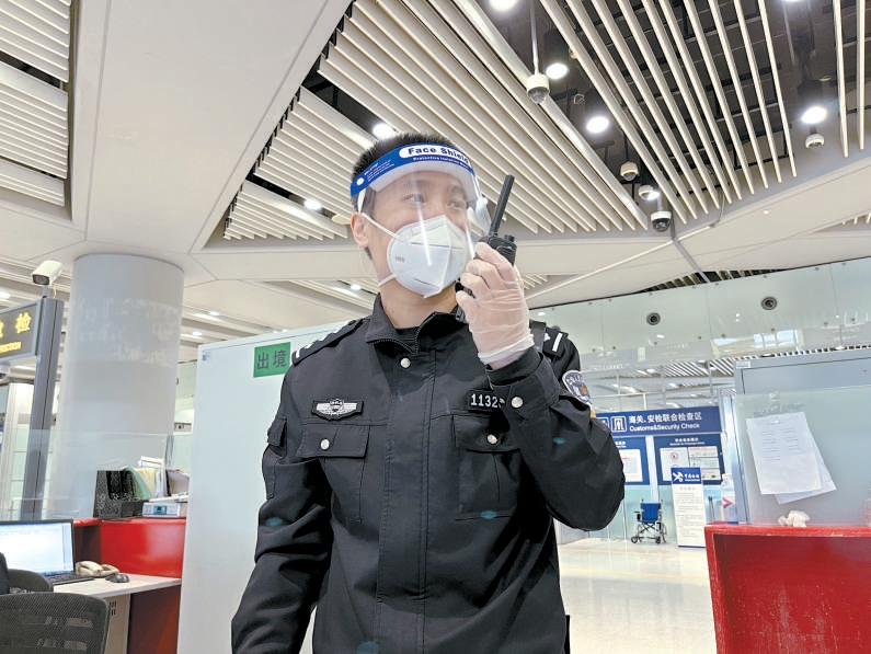 張浩在首都國(guó)際機(jī)場(chǎng)邊檢出境現(xiàn)場(chǎng)執(zhí)勤。