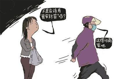 前幾天,京津冀三地消協(xié)聯(lián)合向外賣餐飲服務(wù)企業(yè)發(fā)出推廣使用食安封簽的倡議,建議企業(yè)施行“一餐一封簽”制度,并向外賣餐飲企業(yè)贈送500萬枚“食安封簽”,得到了 30余個品牌外賣餐飲服務(wù)企業(yè)的響應(yīng)。這種柔性倡導(dǎo)服務(wù)與法律的剛性要求相結(jié)合,可以讓食安封簽制度取得更好的落地效果,值得各地各有關(guān)部門學(xué)習(xí)借鑒。漫畫/陳彬