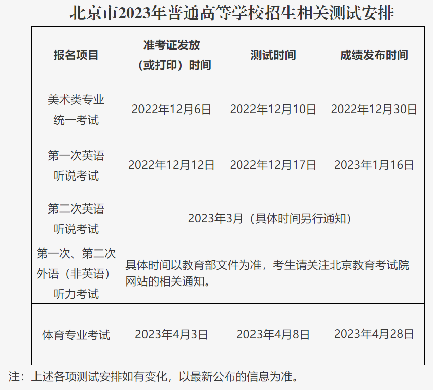 (四)2023年普通高等學(xué)校招生美術(shù)類專業(yè)統(tǒng)一考試、體育專業(yè)考試、英語聽說考試、外語(非英語)聽力考試報名與高考報名同期進行,符合條件擬報名參加相關(guān)測試的考生須選報相關(guān)項目并繳費。
