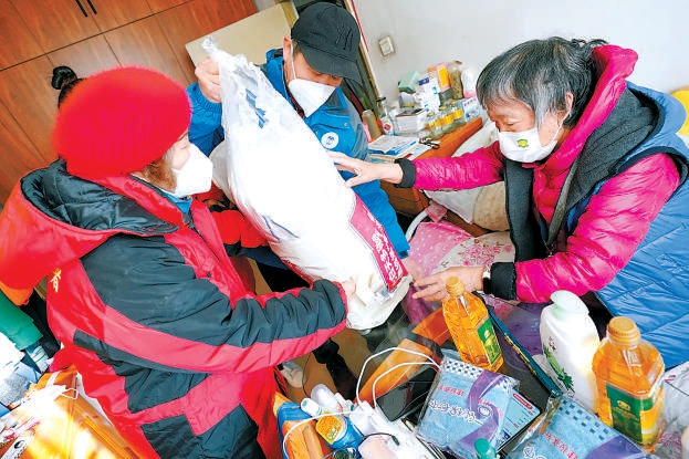 昨天,在龍?zhí)督值佬腋I鐓^(qū)養(yǎng)老服務(wù)驛站,“夕陽手拉手互助團”和“小棉襖愛老”的志愿者們,將愛心物資送到社區(qū)養(yǎng)老家庭照護(hù)床位的老人手中。疫情下,老年群體更加需要關(guān)注與關(guān)愛,志愿者們以需求為導(dǎo)向,精準(zhǔn)服務(wù)老年人。 本報記者 方非攝