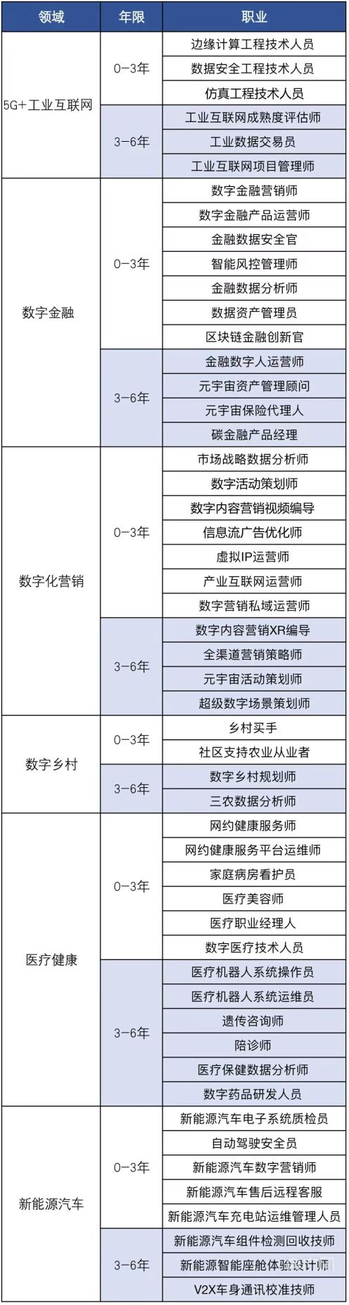 此次發(fā)布的52個(gè)未來(lái)職業(yè)“高清畫(huà)像”,涉及涵蓋醫(yī)療健康、5G+工業(yè)互聯(lián)網(wǎng)、數(shù)字化營(yíng)銷(xiāo)、數(shù)字金融、數(shù)字鄉(xiāng)村、新能源汽車(chē)等六大領(lǐng)域,依據(jù)發(fā)展成熟度分為0-3年與3-6年兩個(gè)階段,既可以看到新技術(shù)、新業(yè)態(tài)和新模式場(chǎng)景下,原有職業(yè)內(nèi)涵發(fā)生變化的更新性職業(yè),也可以看到全新職業(yè)類(lèi)型,不僅明確了職業(yè)定義,細(xì)化了主要工作任務(wù),更進(jìn)一步列出了具體技能要求清單。