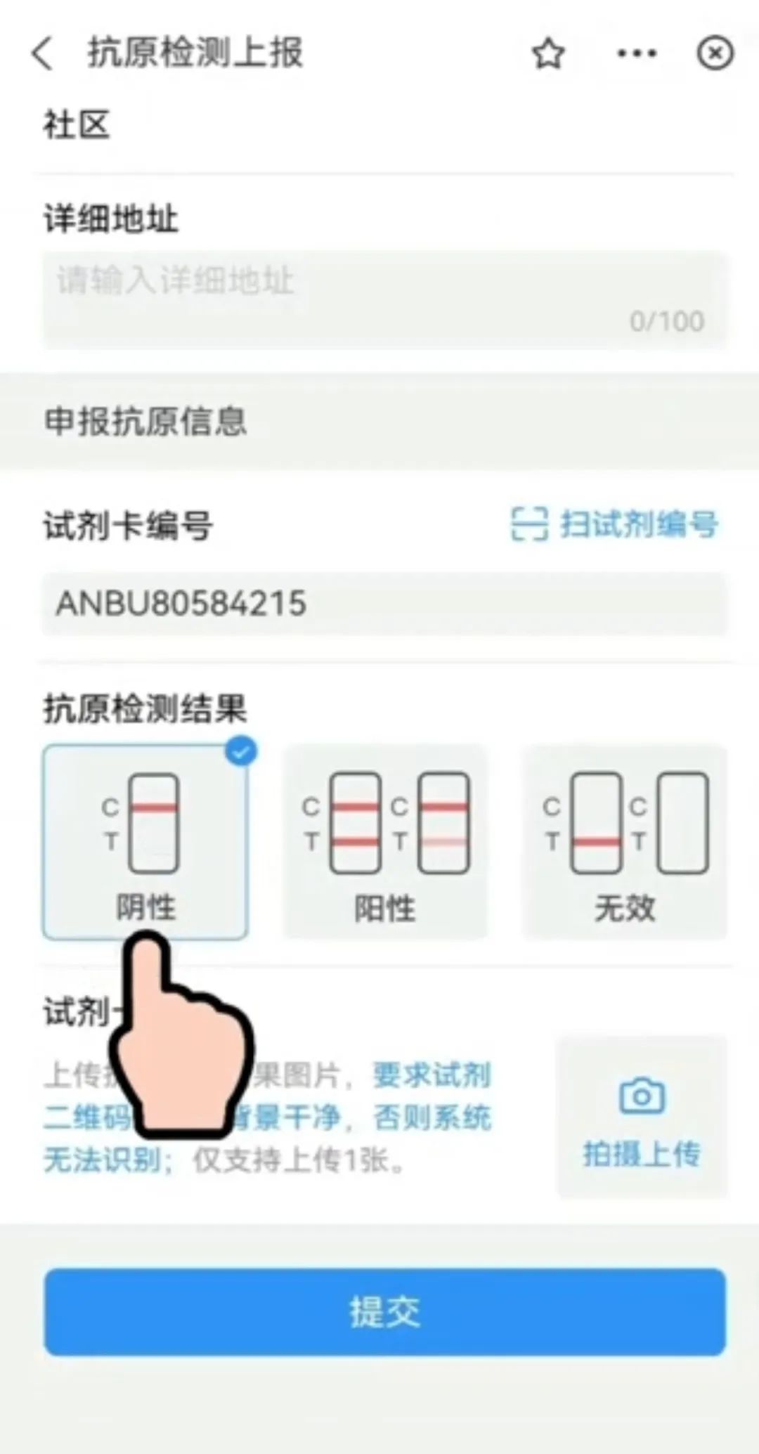 4.上傳抗原檢測試劑盒結(jié)果圖片。