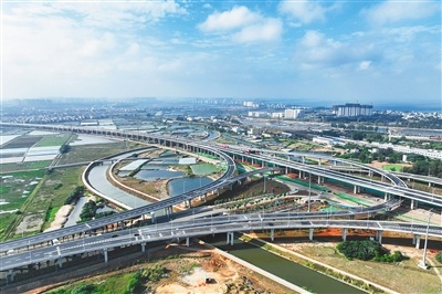 12月28日,空中俯瞰當(dāng)日通車的G15沈海高速公路海口段海秀互通路段。 武威 攝