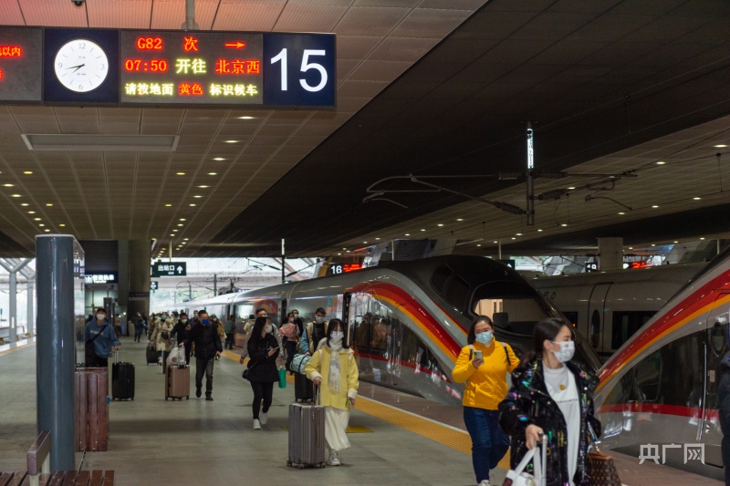 乘客搭乘G82次復興號智能型動車組出行(央廣網(wǎng)記者 黃璐璐攝)