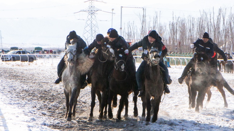 賽馬、斗雞、拔河、叼羊……賽場(chǎng)上選手激情澎湃,賽場(chǎng)下觀眾喝彩不斷。一匹匹風(fēng)馳電掣的駿馬激起雪霧陣陣,騎手們用精湛的馬技點(diǎn)燃寒冬里的激情,一場(chǎng)精彩紛呈的冰雪盛宴正式上演。