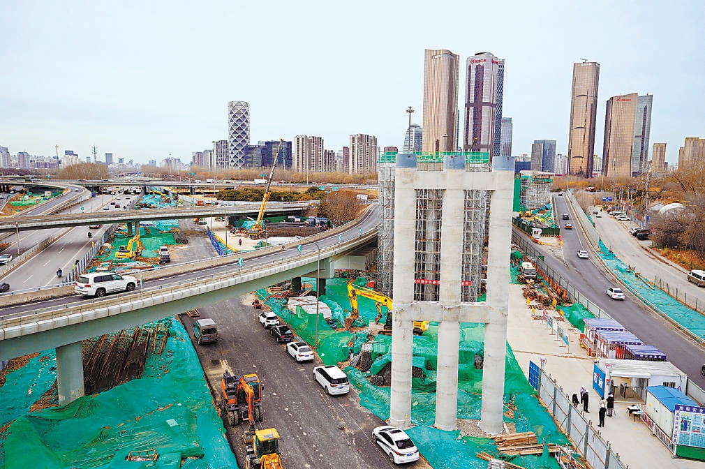 京密快速路4標段所在的五元橋施工現(xiàn)場,工人們忙著綁扎鋼筋、澆筑混凝土、焊接鋼筋籠。目前,該項目正處于橋梁樁基建設、現(xiàn)澆箱梁、排架搭設等施工階段。 本報記者 程功攝