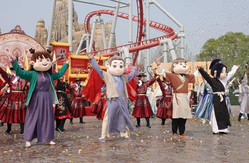 4月1日,北京歡樂谷2023年國潮文化節(jié)正式拉開帷幕,經(jīng)典影視劇《武林外傳》中的佟掌柜、白展堂、郭芙蓉等形象在園區(qū)與游客們見面。記者了解到,近期北京歡樂谷客流量回暖,周末更是迎來游覽高峰,因此景區(qū)建議游客綠色出行、錯峰入園。