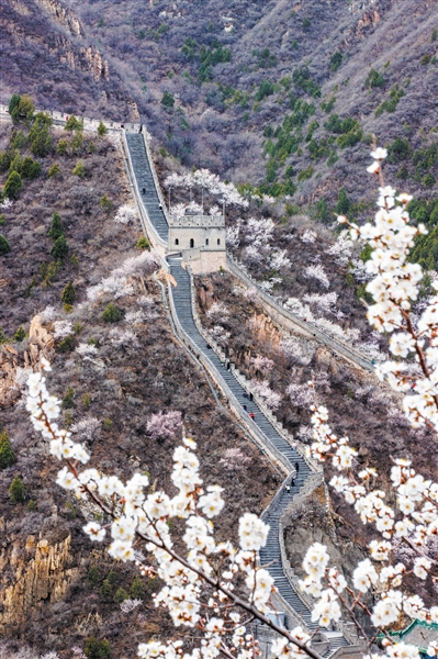 3月24日,居庸關(guān)長城與山花爛漫同框。新京報(bào)記者 王子誠 攝