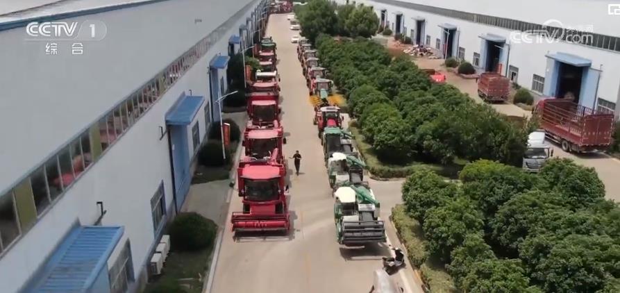 總臺央視記者 陳博:這里是河南省駐馬店市最大的一家農(nóng)機專業(yè)合作社,再有5天左右的時間,駐馬店就將迎來小麥大規(guī)模機收作業(yè)?,F(xiàn)在在這里我們可以看到這一系列的小麥聯(lián)合收割機、摟草機、打捆機都已經(jīng)完成了麥?zhǔn)涨暗木S修和保養(yǎng)的準(zhǔn)備工作。在這里我們觀察到一個新的現(xiàn)象,就是像這樣大馬力、大喂入量的農(nóng)機,它的數(shù)量有了一個明顯的提升,它們投入到生產(chǎn)中就會大幅提升麥?zhǔn)盏淖鳂I(yè)效率。與此同時,在我左手邊這些履帶式收割機,它們的數(shù)量也有了增加,在后期如果遇到連陰雨天氣的話,地面會濕滑泥濘,普通農(nóng)機下不了田,它們就會發(fā)揮一個很大的作用,為后續(xù)的應(yīng)急作業(yè)提供一個有力的保障。