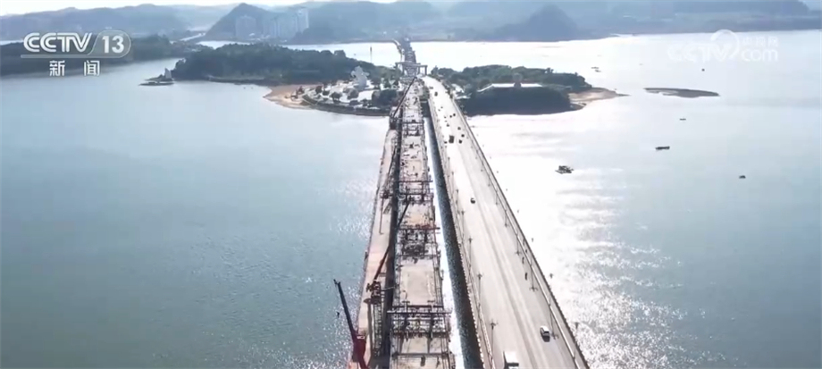 28日凌晨,廣西防城港西灣海面上燈火通明。在防東鐵路西灣跨海雙線特大橋施工現(xiàn)場(chǎng),隨著施工人員完成連續(xù)梁合龍段混凝土澆筑,這座大橋6聯(lián)連續(xù)梁全部完成合龍。西灣跨海雙線特大橋全長(zhǎng)7518米,共設(shè)計(jì)26個(gè)橋墩。防東鐵路正線長(zhǎng)46.897公里,設(shè)計(jì)時(shí)速200公里,是廣西沿海高鐵的延伸,也是連接中越兩國(guó)經(jīng)貿(mào)往來的重要鐵路項(xiàng)目。