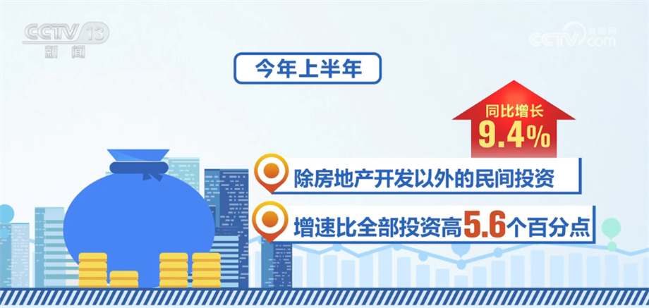 國家發(fā)展改革委相關(guān)負(fù)責(zé)人表示,當(dāng)前,民間投資結(jié)構(gòu)持續(xù)優(yōu)化,一些領(lǐng)域民間投資顯現(xiàn)了不少亮點。今年上半年,除房地產(chǎn)開發(fā)以外的民間投資同比增長9.4%,增速比全部投資高5.6個百分點;制造業(yè)民間投資增長8.4%,比制造業(yè)整體投資高出2.4個百分點,特別是清潔能源、電動汽車等領(lǐng)域民間投資比較活躍;基礎(chǔ)設(shè)施民間投資增長15.6%,比基礎(chǔ)設(shè)施整體投資高出8.4個百分點,呈現(xiàn)出較強的投資信心和投資動力。