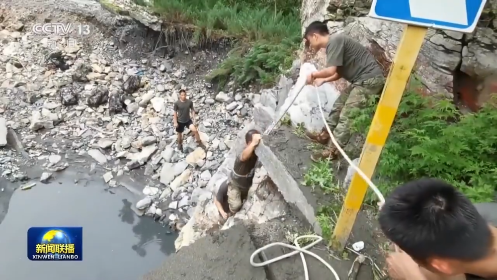 某抗洪搶險應(yīng)急通信保障任務(wù)分隊指揮員 于林平:準(zhǔn)備上去的時候,下面的那個路突然塌方了,我整個人就像吊單杠一樣,整個給我拉直了,然后我的戰(zhàn)友把我拉上來了。下面全部是碎石,水流非常湍急,非常有可能會被沖下去。