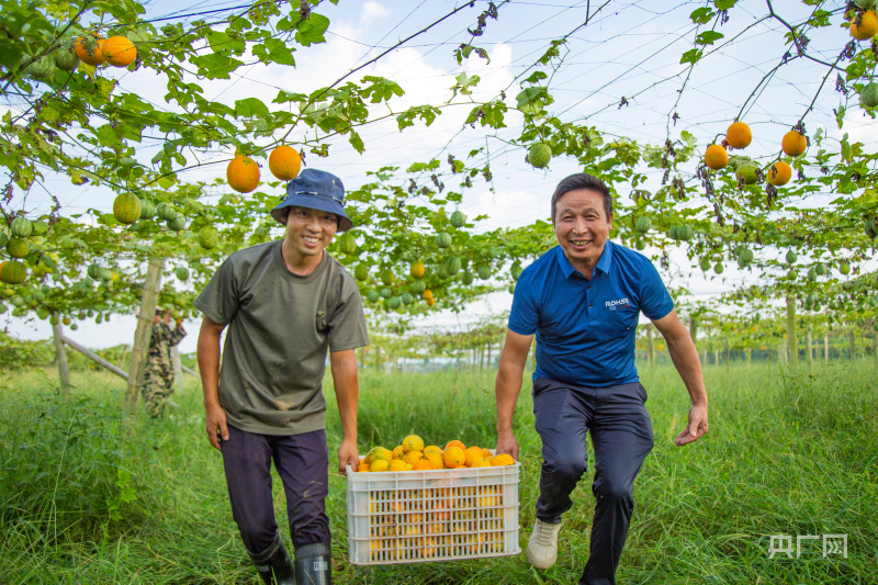 央廣網(wǎng)吉安9月7日消息(記者劉培?。┭巯?,正是瓜果飄香季節(jié)。9月6日,走進江西省吉安市吉安縣指陽鄉(xiāng)長豐村的瓜蔞種植基地,整齊的支架上瓜蔞藤相互纏繞,一個個金燦燦的瓜蔞果掛滿枝頭,瓜農(nóng)們正穿梭其中忙碌采收,田間地頭呈現(xiàn)著一幅幅豐收景象,大家的臉上洋溢著豐收的喜悅。