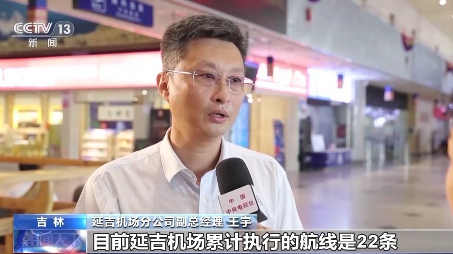 延吉機(jī)場(chǎng)分公司副總經(jīng)理 王宇:目前延吉機(jī)場(chǎng)累計(jì)執(zhí)行的航線是22條,國內(nèi)航線18條,國際航線4條。每周能達(dá)到對(duì)韓國的航線84班,對(duì)韓國的航班量位居?xùn)|北的第一位。