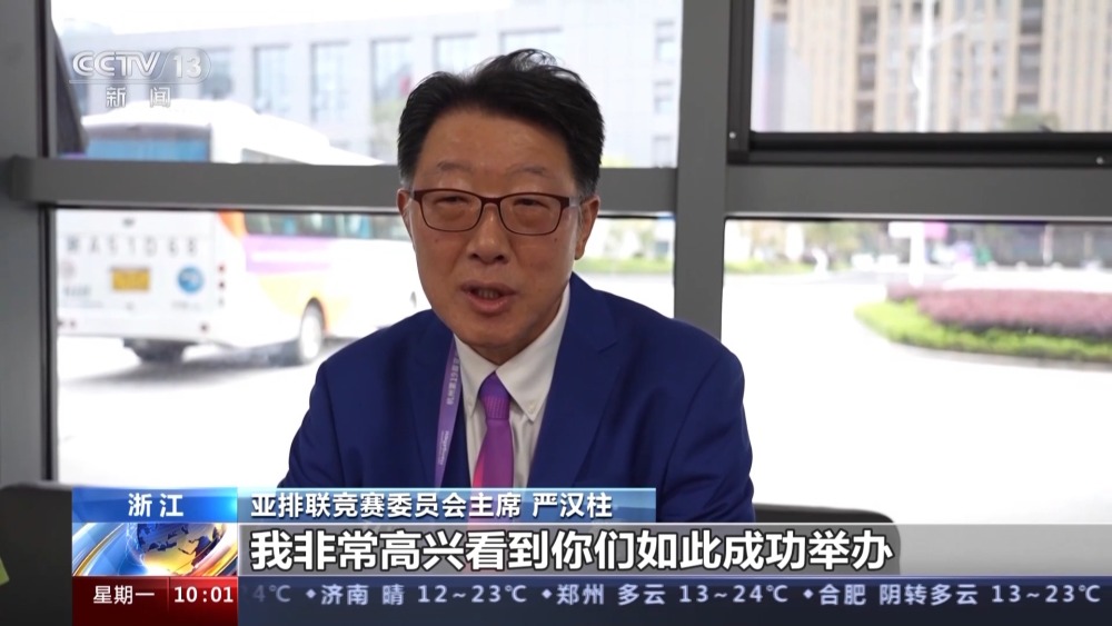 亞排聯(lián)競賽委員會主席嚴(yán)漢柱:我非常高興看到你們?nèi)绱顺晒εe辦亞運(yùn)會的男排和女排比賽,場館內(nèi)外工作人員,他們在自己崗位上盡職盡責(zé),沒有出現(xiàn)任何問題,有如此優(yōu)秀的場館,我想在未來見證這個(gè)場館舉辦更多的排球國際賽事,我還會再來的。