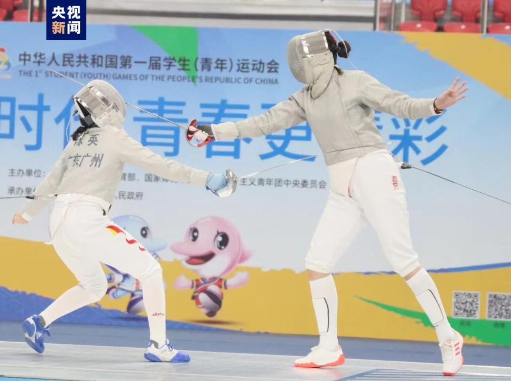 11月7日,第一屆全國學(xué)生(青年)運(yùn)動(dòng)會(huì)擊劍男女佩劍團(tuán)體決賽在廣西體育局三塘體育訓(xùn)練比賽基地綜合體育館進(jìn)行,南京隊(duì)和廣州隊(duì)?wèi)?zhàn)勝各自對手奪得金牌。