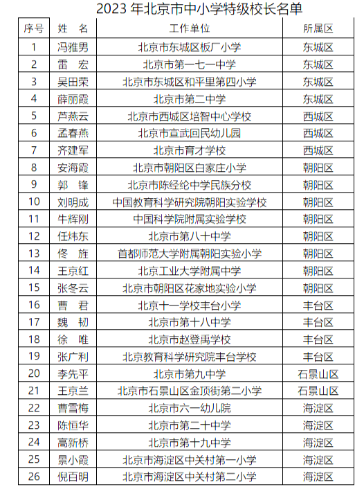 北京市第三批中小學特級校長名單(圖源:北京市教委官方網(wǎng)站)