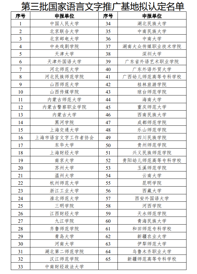 第三批國家語言文字推廣基地擬定名單(圖源:教育部官網(wǎng))