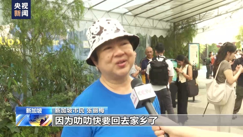 新加坡市民 張麗梅:因?yàn)檫愤房煲厝ゼ亦l(xiāng)了,所以我要過來跟它打招呼,說拜拜。很傷心,因?yàn)槲液芟M梢粤粼谛录悠?,可是也是高興,因?yàn)樗梢曰厝ゼ亦l(xiāng)幫助研究和保護(hù)大熊貓了。