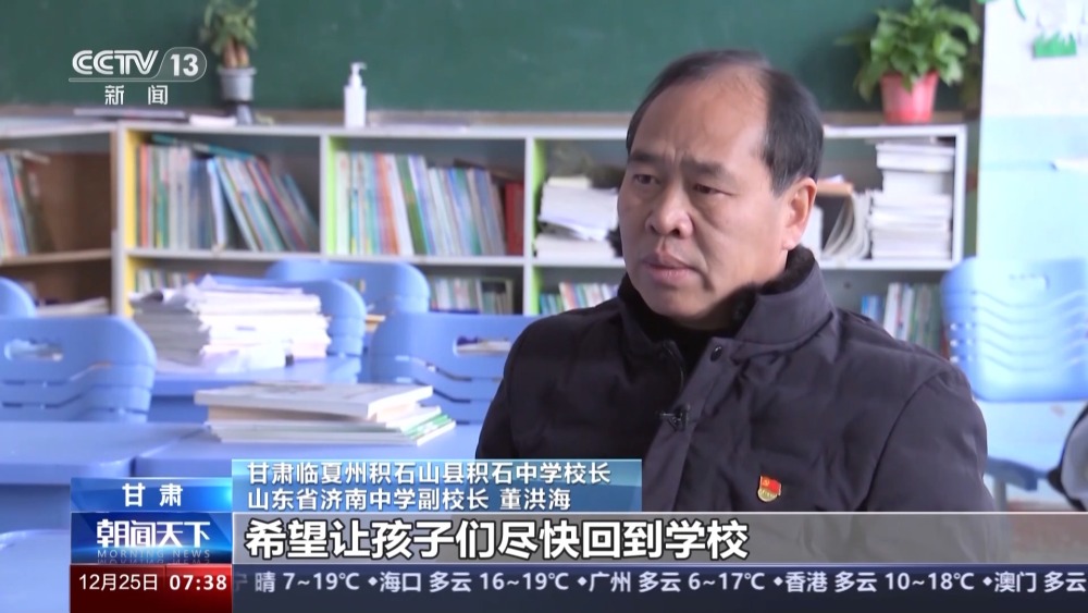 甘肅臨夏州積石山縣積石中學(xué)校長、山東省濟(jì)南中學(xué)副校長 董洪海:地震當(dāng)天的凌晨,就已經(jīng)有臨夏市的百姓到學(xué)校里邊送食物,有大量的救援的車輛、人員進(jìn)入,也感到了整個社會支撐的力量。我不是一個人在戰(zhàn)斗,是一個很大的團(tuán)隊。