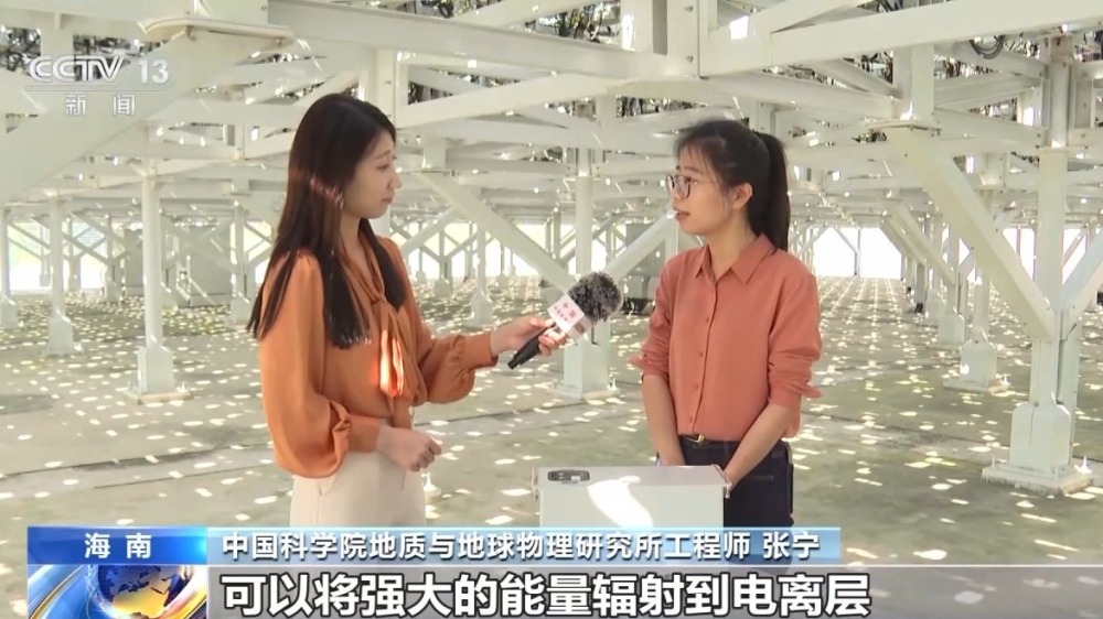 中國科學(xué)院地質(zhì)與地球物理研究所工程師 張寧:通過8320個組件可以將強大的能量輻射到電離層,然后電離層會散射微弱的回波信號。然后我們通過低噪聲放大和波形的編解碼,可以對微弱的散射信號進行分析,得到電離層的參數(shù),將電離層中電子和離子的狀態(tài),像顯微鏡一樣放大給科學(xué)家。