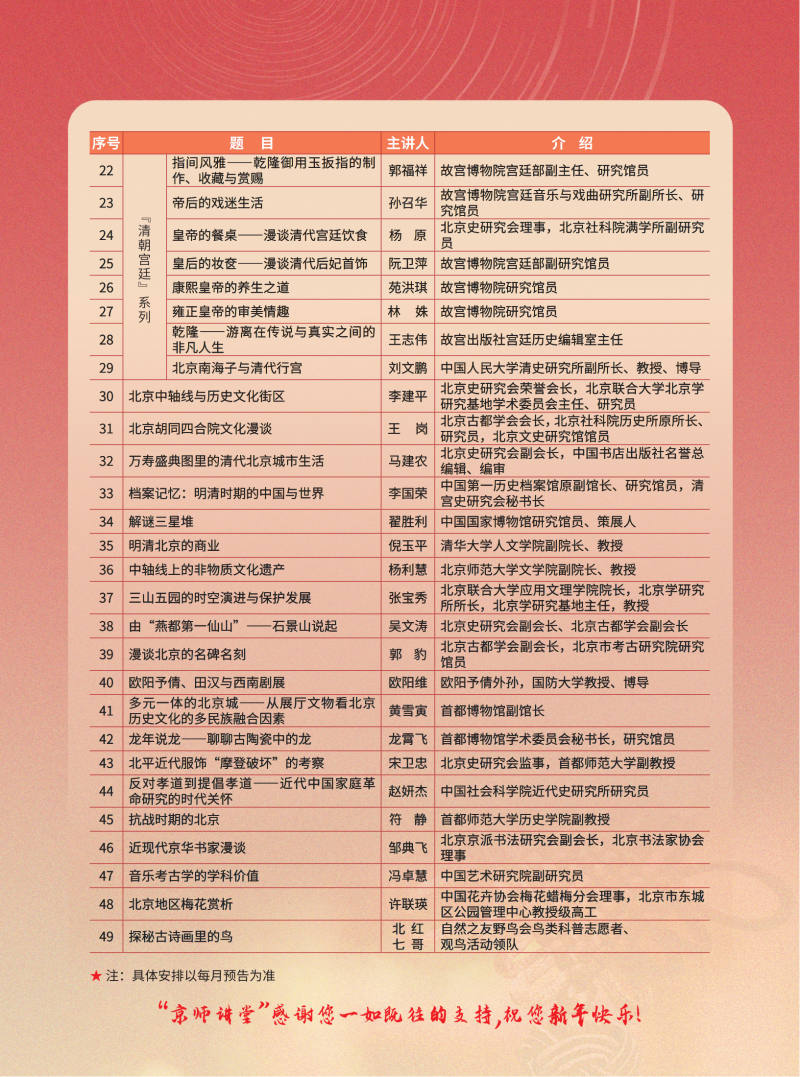 首圖“鄉(xiāng)土課堂”更名為“京師講堂”,全年將舉辦近50場(chǎng)講座