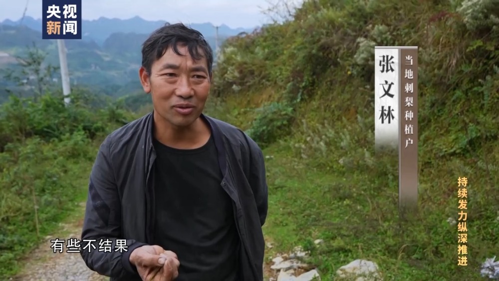 當(dāng)?shù)卮汤娣N植戶 桃橋飛:這七八年都沒有收益過,要是早有點(diǎn)收益的話可能老百姓就想種下去了。像這個就是砍掉的刺梨了,這個果子就是這樣的,還沒有熟都已經(jīng)爛了,不如把它翻出來種一點(diǎn)苞谷洋芋,至少還有點(diǎn)收成。