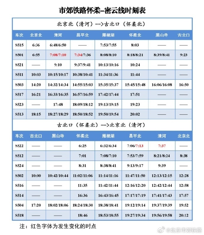 北京市郊鐵路:1月10日起 懷柔-密云線列車開行時(shí)點(diǎn)調(diào)整
