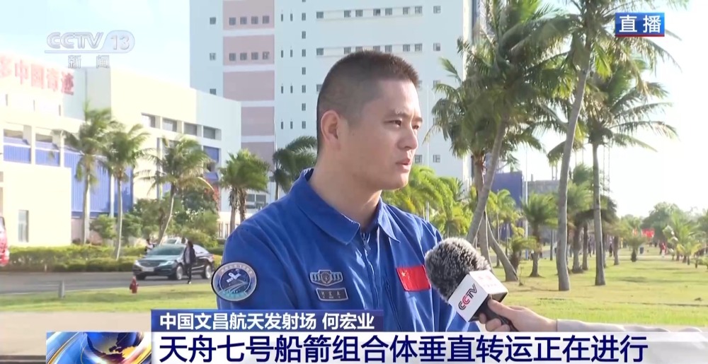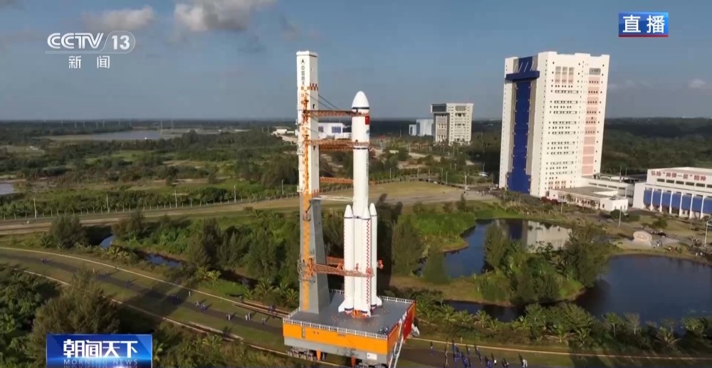 天舟七號船箭組合體垂直轉(zhuǎn)運正在文昌航天發(fā)射場進行