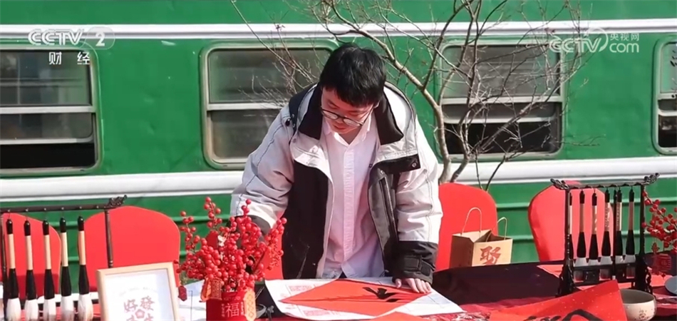 在熱鬧的年豬宴一旁,還有年畫拓印、新年剪紙、福字春聯(lián)的年味集市和打年糕活動,現(xiàn)場聚集了不少游客參與其中,感受熱鬧的氛圍。