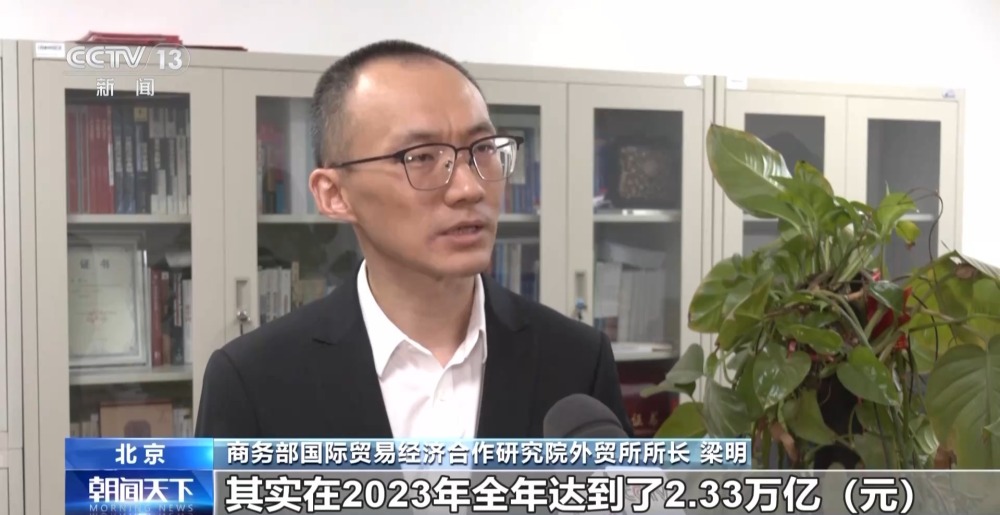 商務部國際貿(mào)易經(jīng)濟合作研究院外貿(mào)所所長 梁明:(我們的)跨境電商,在2023年全年達到了2.33萬億,同比增長15.6%,比去年增速是加快了5.8個百分點?!靶氯龢印蔽覀円彩鞘状瓮黄?萬億,增速是接近30%。