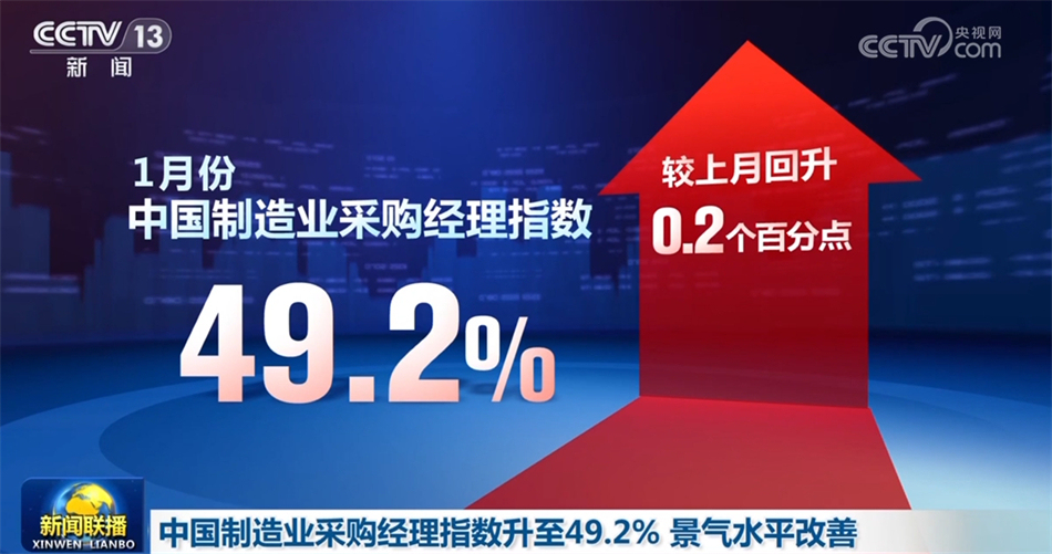 中國物流與采購聯(lián)合會、國家統(tǒng)計局服務(wù)業(yè)調(diào)查中心1月31日公布,1月份中國制造業(yè)采購經(jīng)理指數(shù)為49.2%,較上月回升0.2個百分點,結(jié)束了連續(xù)3個月下降勢頭,景氣水平有所改善。