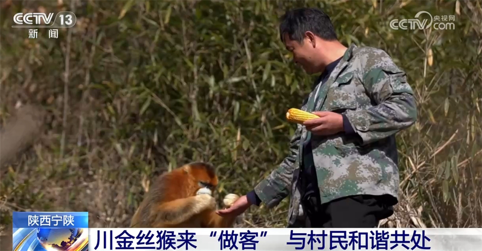 在秦嶺山區(qū)新場鎮(zhèn)同心村,由于臨近川金絲猴棲息地,村民們就經(jīng)??梢砸欢谩昂镒觼泶T”的新鮮事。對于這些不速之客,村民們沒有刻意干擾。
