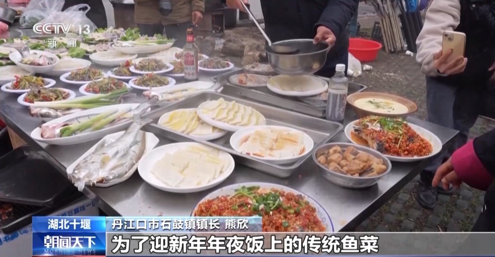 丹江口市石鼓鎮(zhèn)鎮(zhèn)長(zhǎng) 熊欣:這些菜從魚頭、到魚身、到魚皮,也是我們當(dāng)?shù)貫榱擞履昴暌癸埳系膫鹘y(tǒng)魚菜。