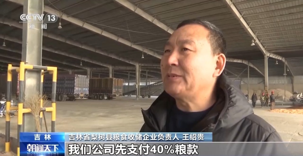 吉林省梨樹縣糧食收儲企業(yè)負(fù)責(zé)人 王紹貴:合作社或者是種糧大戶可以先把糧送到我們公司,我們公司先支付40%糧款,剩余部分賣糧戶可以在合適的價格,確定價格之后再一起結(jié)算。