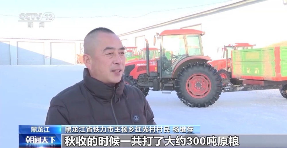 黑龍江省鐵力市王楊鄉(xiāng)紅光村村民 楊繼存:秋收的時候一共打了大約300噸原糧,這兩天價格好,趕緊到合作社把糧食賣了,賣個好價過個好年。