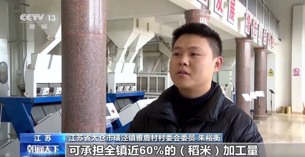 江蘇省太倉市璜涇鎮(zhèn)雅鹿村村委委員 朱裕衡:這個加工廠是由我們和隔壁的楊漕村、孟河村三個村一起投資建設(shè)的,可承擔(dān)全鎮(zhèn)近60%的(稻米)加工量,其他村都可以到這邊來加工,服務(wù)都是一樣的。