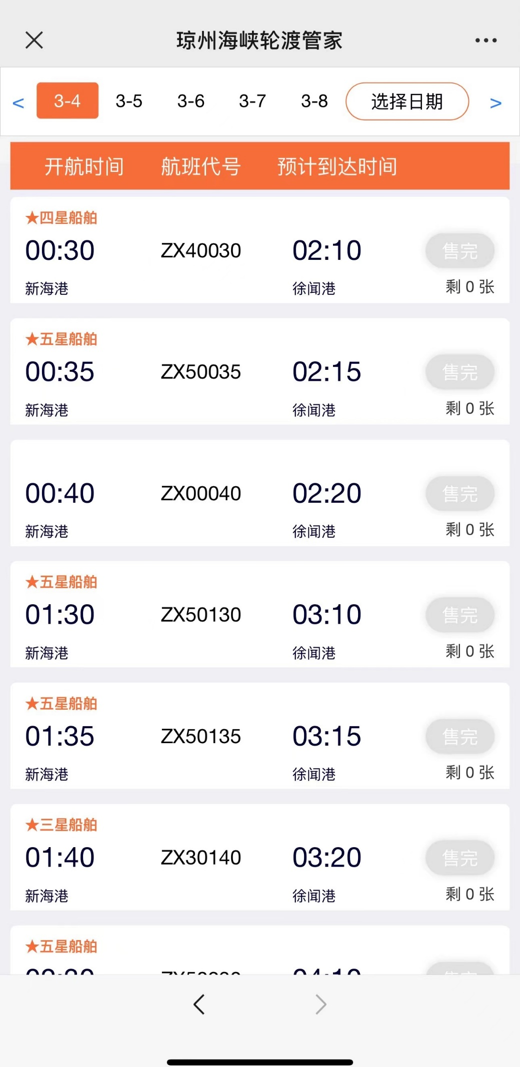 記者18日晚從“瓊州海峽輪渡管家”上查詢發(fā)現(xiàn),3月5日之前從??谛阌⒏?、新海港出港前往廣東湛江徐聞縣的新能源小汽車輪渡船票均顯示售罄;3月5日當天及之后的票暫無法購買。劉先生說:“這已經是正常上班的時間了,至少我們看到周邊的這些新能源車跟初七、初八之前的車輛是相等的;跟去年或者往年比的話,滯留車還是比較多?!?/p>