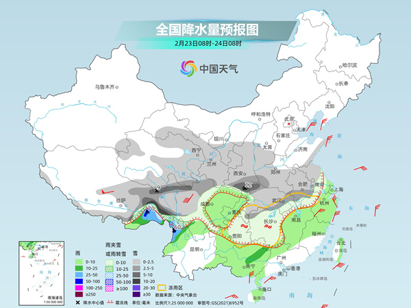 今天(2月23日),我國中東部等地大范圍雨雪持續(xù),降水強度繼續(xù)減弱,不過陜西南部、湖北東部和南部等地部分地區(qū)仍有大雪,局地暴雪,湖南、貴州等地有凍雨。明后天,北方大部降雪停歇,南方仍有雨雪天氣。預(yù)計南方多陰雨的天氣格局將延續(xù)至月底,大部地區(qū)氣溫也持續(xù)低迷,公眾春運出行需注意防范。