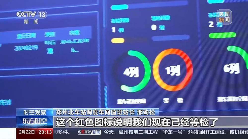 鄭州北車站調(diào)度車間值班站長(zhǎng) 邢勁松:三種圖標(biāo),你看黃色圖標(biāo)說(shuō)明我們檢車能力不太緊張,然后綠色圖標(biāo)說(shuō)明我們接車能力空閑,紅色圖標(biāo)說(shuō)明我們現(xiàn)在已經(jīng)等檢了。今天我們白班基本上開(kāi)了三列化肥煤車,通過(guò)大數(shù)據(jù)服務(wù)我們的春耕生產(chǎn)。