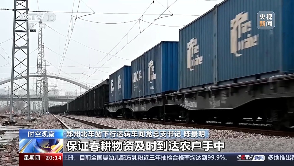 總臺(tái)央視記者 蔣樹(shù)林:這里是鄭州北車站,也是全國(guó)作業(yè)量最大的編組站,大家看我眼前這個(gè)車?yán)锩嫜b的就是當(dāng)下春耕所急需用的化肥原料,作業(yè)還在加班加點(diǎn)地往前推進(jìn)。