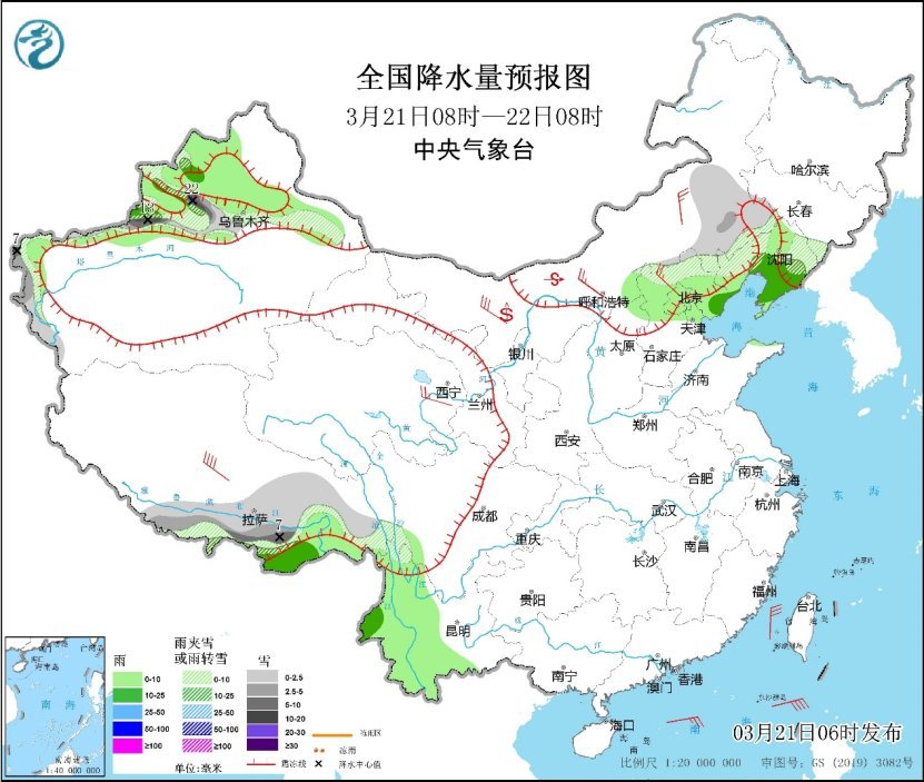 央視網(wǎng)消息:據(jù)中央氣象臺網(wǎng)站消息,昨日,降水主要出現(xiàn)在新疆北部和西藏東南部等地,其中西藏帕里降水量27毫米。預(yù)計(jì)未來三天,我國的降水將日漸增多,新疆北部、西藏東南部、內(nèi)蒙古東部、華北北部、東北地區(qū)等地有明顯雨雪天氣。此外,公眾還需關(guān)注22日夜間起影響我國的冷空氣給中東部帶來的大風(fēng)、降溫和雨雪天氣。