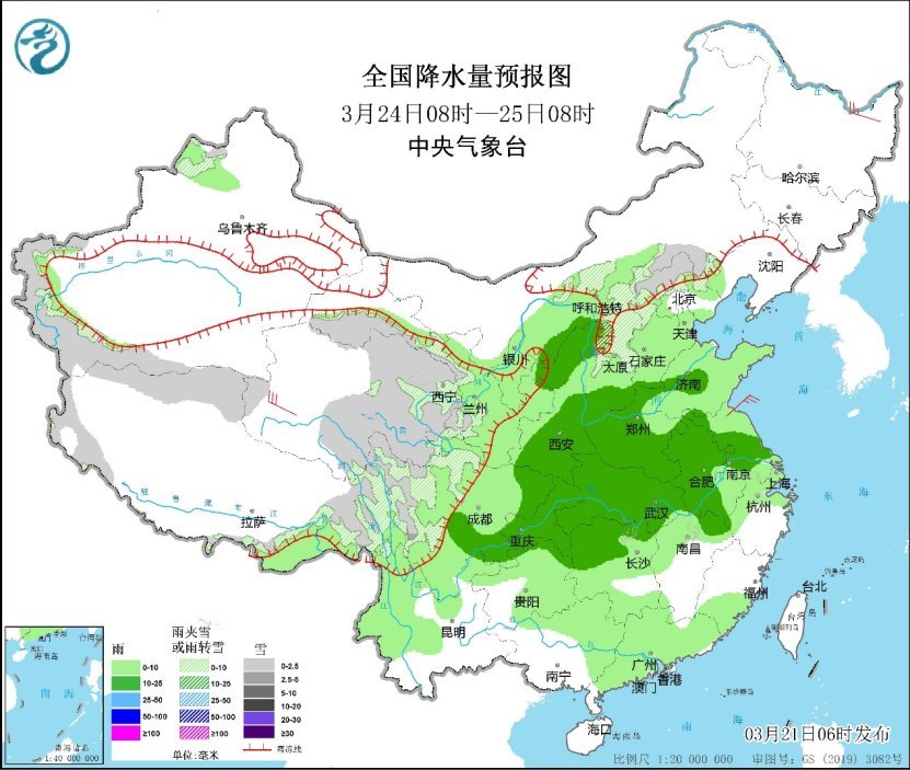 受冷空氣影響,22日夜間至25日,中東部大部地區(qū)自北向南將出現(xiàn)4~6℃降溫,部分地區(qū)降溫8~10℃,長江中下游及其以北地區(qū)將有4~5級偏北風(fēng),陣風(fēng)可達(dá)6~8級,內(nèi)蒙古中東部及東北地區(qū)西部等地局地有揚(yáng)沙或浮塵;受冷暖空氣共同影響,西北地區(qū)東部、黃淮、江淮、江漢、江南中北部、四川東北部、重慶及貴州東部等地的部分地區(qū)有中到大雨,局地暴雨或大暴雨,上述地區(qū)局地伴有短時強(qiáng)降水、風(fēng)雹等強(qiáng)對流天氣。
