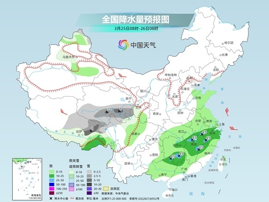 中央氣象臺預計,今天新疆北疆北部和沿天山地區(qū)、西藏中部和東北部、青海南部、甘肅東南部、川西高原北部等地部分地區(qū)有小到中雪或雨夾雪,其中,西藏東北部、青海東南部等地局部有大雪。西藏東南部、四川盆地西北部、黃淮東部、江淮、江漢大部、江南、華南北部、貴州東部等地部分地區(qū)有小到中雨,其中,安徽南部、江西中北部、浙江中部、福建西北部、湖南南部、廣西東北部等地局部有大雨。