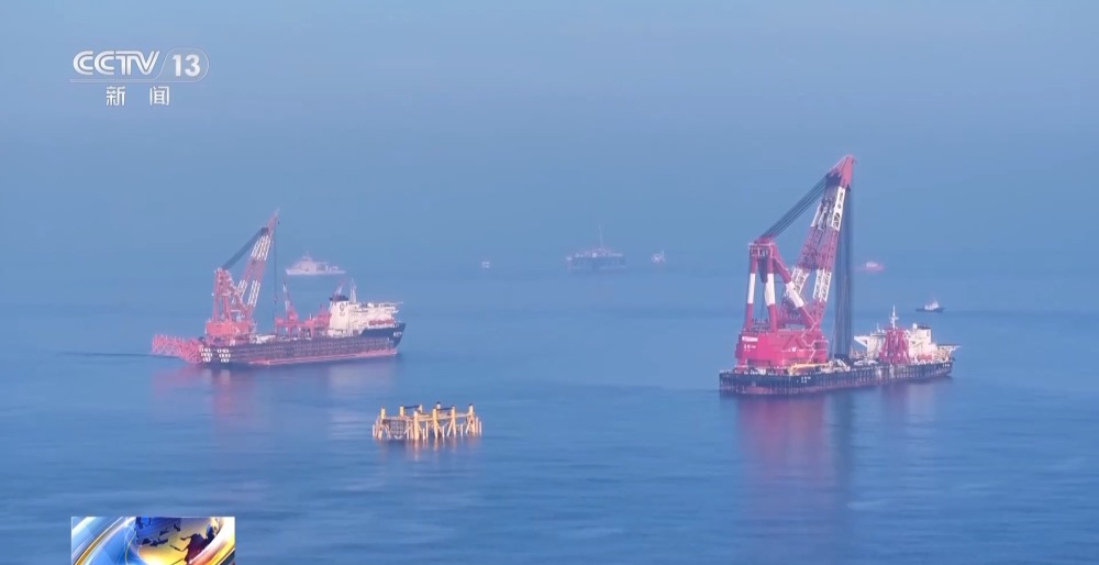 總臺(tái)央視記者 古峻嶺:在“?;?hào)”海上安裝作業(yè)現(xiàn)場(chǎng),經(jīng)過16個(gè)小時(shí)的連續(xù)施工作業(yè),“海基二號(hào)”已經(jīng)由昨天滑移下水時(shí)的橫向漂浮狀態(tài),變?yōu)橹绷顟B(tài),它高達(dá)338米的龐大身軀,已經(jīng)穩(wěn)穩(wěn)站立在了324米深的海床之上,僅有10余米的部分露出水面,接下來工作人員將以它為基礎(chǔ),建設(shè)安裝一座萬噸級(jí)海上鉆井平臺(tái)。未來它將在臺(tái)風(fēng)和惡劣海況的輪番考驗(yàn)下,在這里穩(wěn)穩(wěn)矗立30年,源源不斷地將深海油氣輸送到千家萬戶,為保障國(guó)家能源安全提供堅(jiān)強(qiáng)支撐。