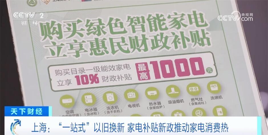 央視網(wǎng)消息:日前,國務院印發(fā)《推動大規(guī)模設備更新和消費品以舊換新行動方案》,明確實施消費品以舊換新行動。上海市從3月30日起實施新一輪綠色智能家電消費補貼政策,對16大類一級能效家電產(chǎn)品進行補貼,各大商超賣場也推出“一站式”以舊換新、延伸局部改造等補貼及服務。