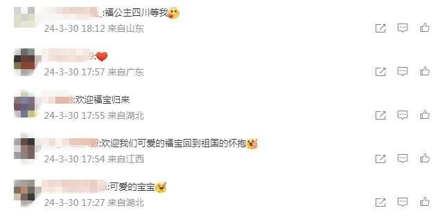 有網友寫道,祝愿“福寶”一切順利,“能很快適應新環(huán)境”。還有網友表示,“福寶回國后一定也要福氣滿滿,永遠幸福哦!”